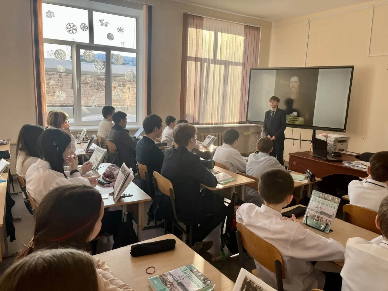 🧑🏫 Обучающиеся 7-х классов вспомнили факты из жизни и творчества писателя.