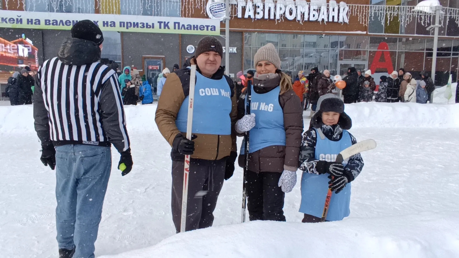 Семья Набиевых приняла участие в городском турнире «Хоккей на валенках» у ТЦ «Планета».