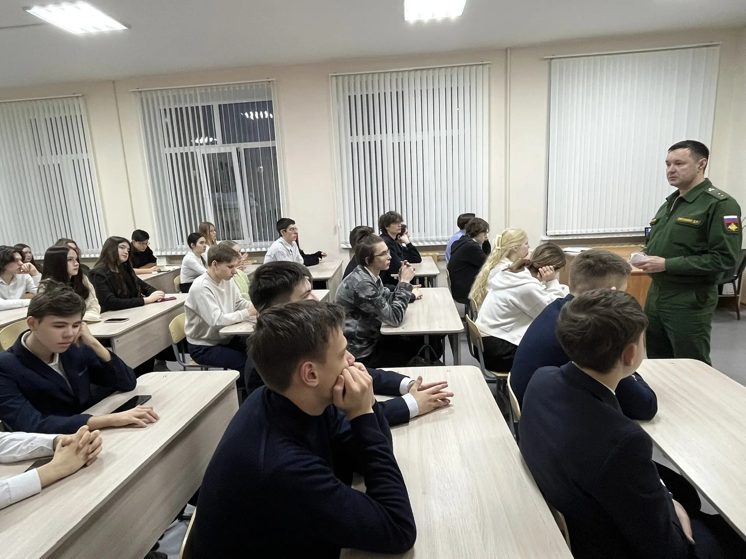 ‼Цель встречи — информирование старшеклассников о возможностях поступления в военные учебные заведения Российской Федерации. Участники получили подробную информацию о структуре подготовки, условиях обучения, требованиях к абитуриентам, перспективах трудоустройства после окончания академий и институтов Минобороны. Особое внимание было уделено программам подготовки офицеров, специальностям, востребованным в современных Вооружённых Силах, а также преимуществам получения образования в воинских колледжах и высших учебных заведениях. Мероприятие способствует формированию осознанного отношения к выбору будущей профессии среди молодёжи.