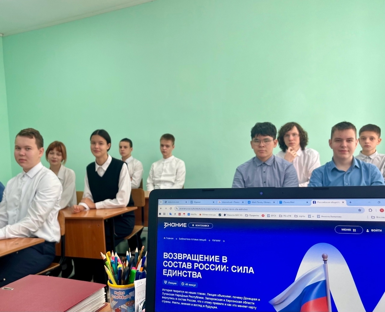 🖊Обучающиеся 9-х классов СОШ № 6 прослушали лекцию «Возвращение в состав России: сила единства», подготовленной Российским обществом «Знание».