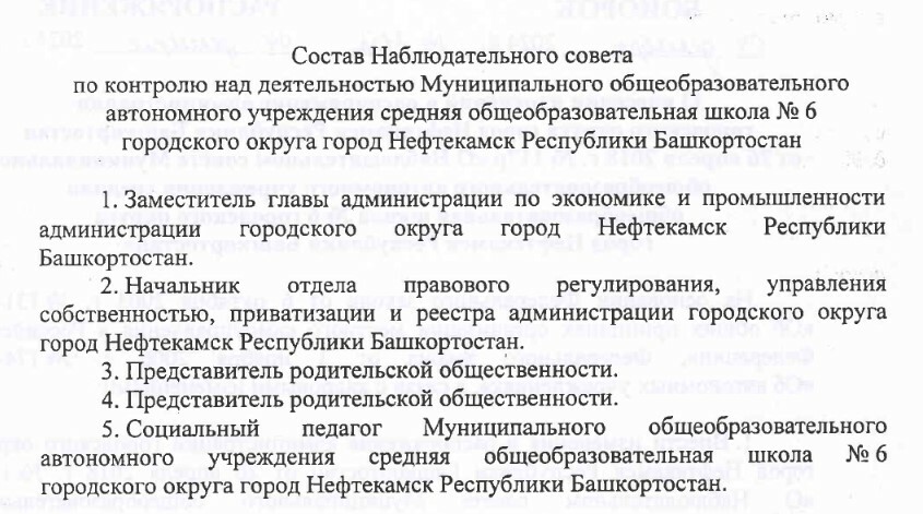 Муниципальное общеобразовательное автономное учреждение средняя общеобразовательная школа №6 городского округа город Нефтекамск Республики Башкортостан